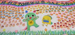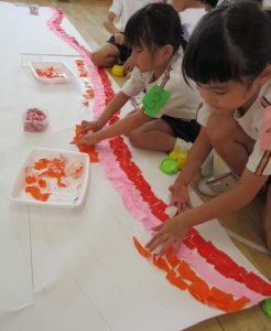 年長さんが一枚ずつ丁寧に折り紙を貼り合わせて完成した看板は、温かみがあり素敵でしたね!