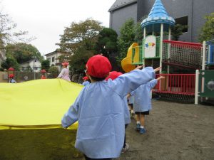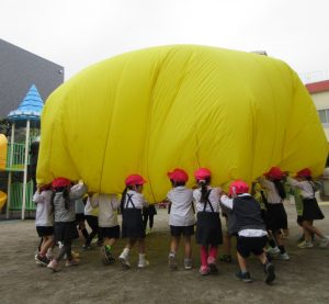 年少さん、年中さんは、年長さんに憧れてパラバルーンにチャレンジしましたよ♪