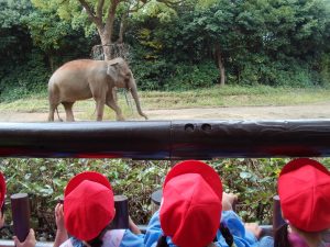 ぞうさんです!子どもたちが到着したのを待っていたかのように、子どもたちのそばを何度もお散歩していましたね♪