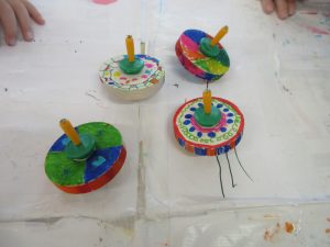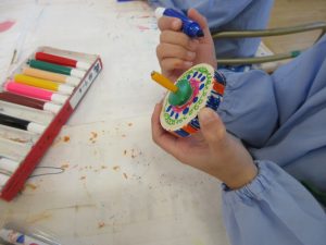 年長さんが、お正月遊びに触れようと、こまを作りました。