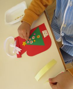 クリスマスツリーを見ながら、クリスマス製作をしました!