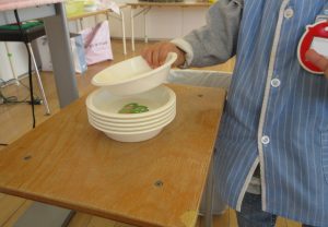 自分で開けることにもチャレンジ♪お皿のお片付けも出来ました。