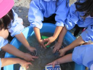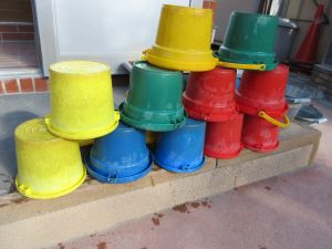 園庭のおもちゃも、みんなで洗ってピカピカにしましたよ!