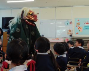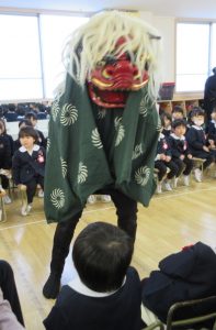 さて、宮内地域に昔から伝わるお囃子と獅子舞を、長きにわたり継承して下さっている地元グループの皆さんが、今年も幼稚園に来て下さいました!
