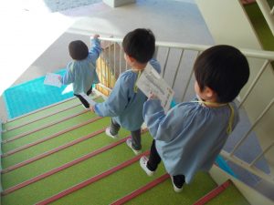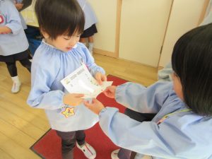 「ゆうびんです!」「ありがとう♪」恥ずかしいそうに異学年のクラスに入り、