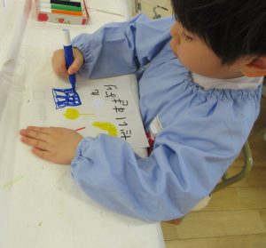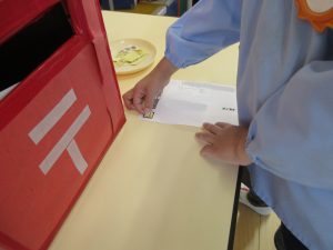 どのクラスの子どもたちも、ハガキを書いてポストに入れることが