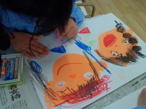 すると・・・先生の髪型はどんなかな? お顔は自分よりも大きい?? いつもそばにいる先生だけど、改めてよ~く先生を観察したり、 園庭にあるジャングルまで一生懸命描いていたり、それぞれに違いがあって 思い出に残る絵が完成しました!